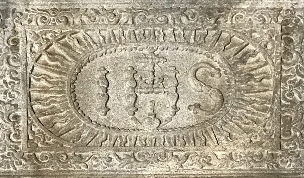 Right: The IHS emblem of the Jesuits on the ruins of St. Paul’s College in Macau.